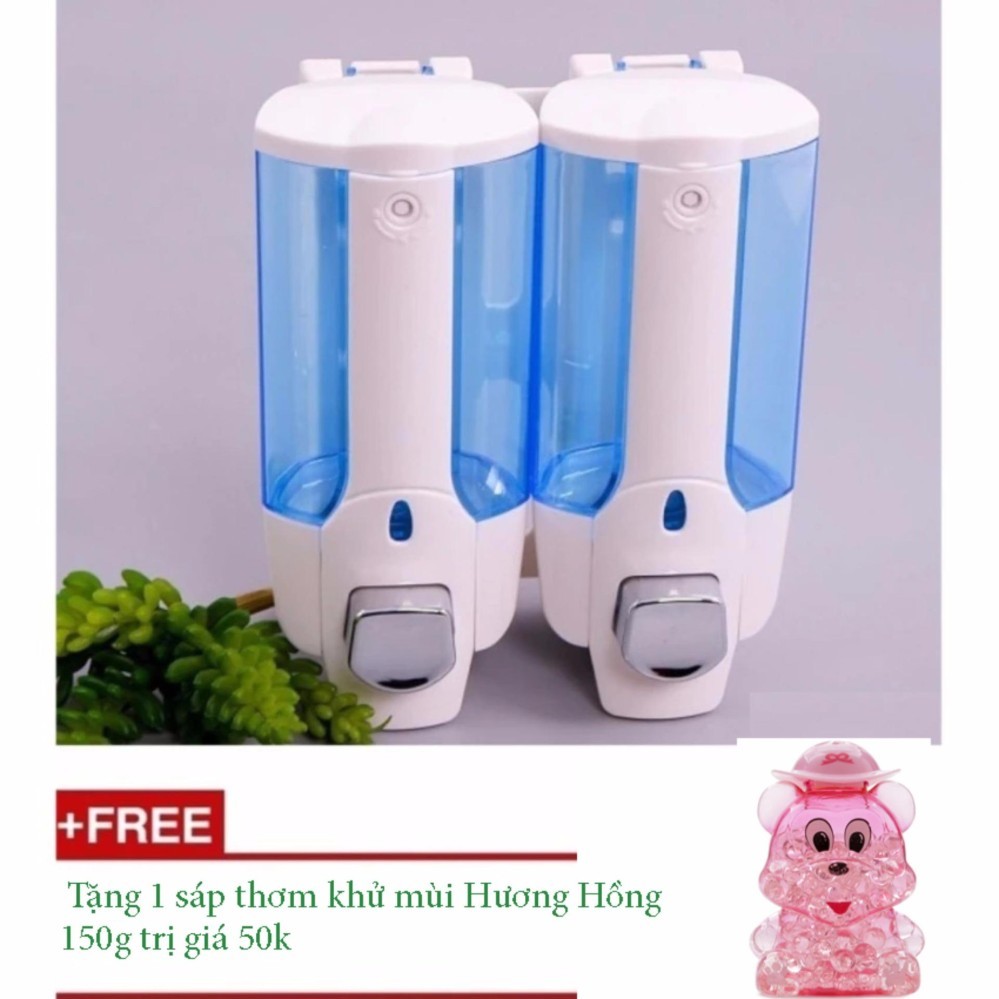 Hộp đựng dầu gội nước rửa tay treo tường nhấn hai bình cao cấp tặng sáp khử mùi 150g (Hương Hồng) TI829