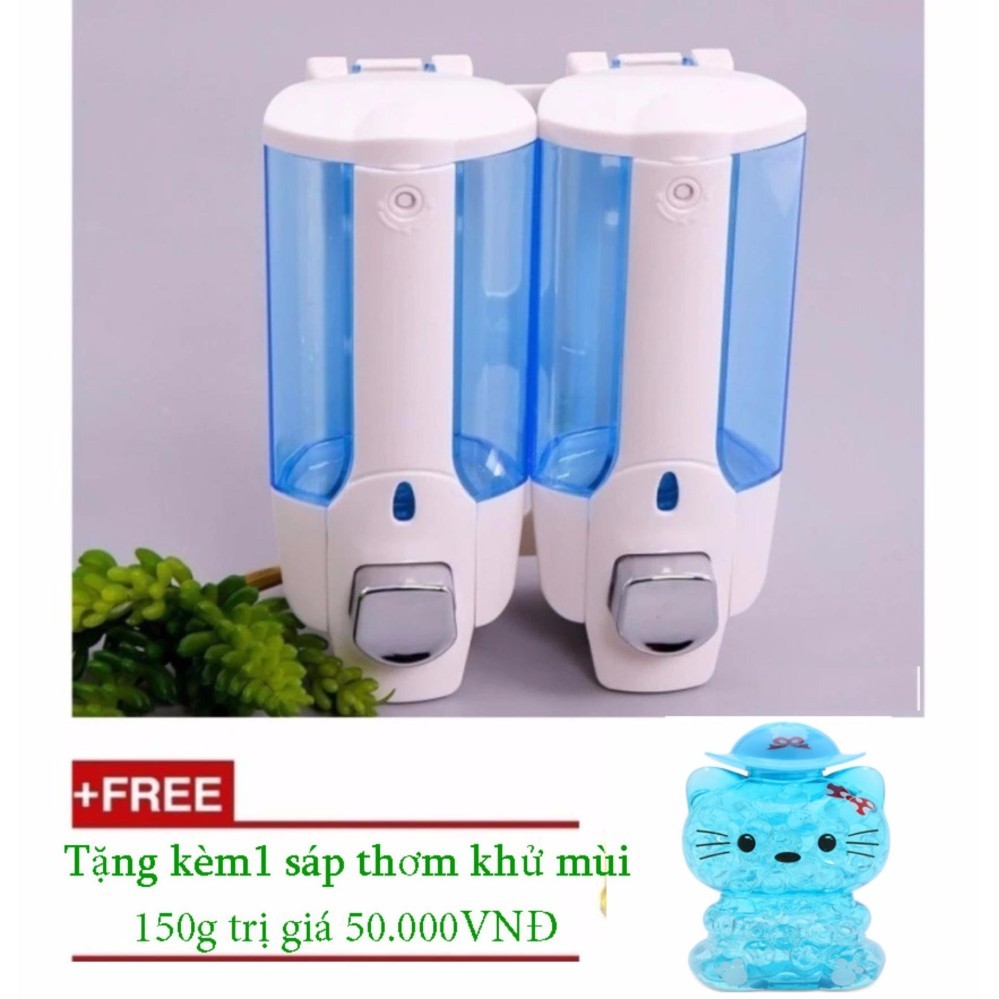 Hộp đựng dầu gội nước rửa tay treo tường nhấn hai bình cao cấp tặng sáp khử mùi 150g (Hương Chaning) TH832
