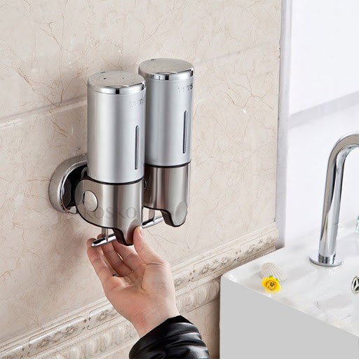 Giới thiệu Hộp đựng dầu gội sữa tắm gắn tường Kosko Gangang GGB02 bạc đôi, bình đựng nước rửa chén, bình đựng dầu rửa chén