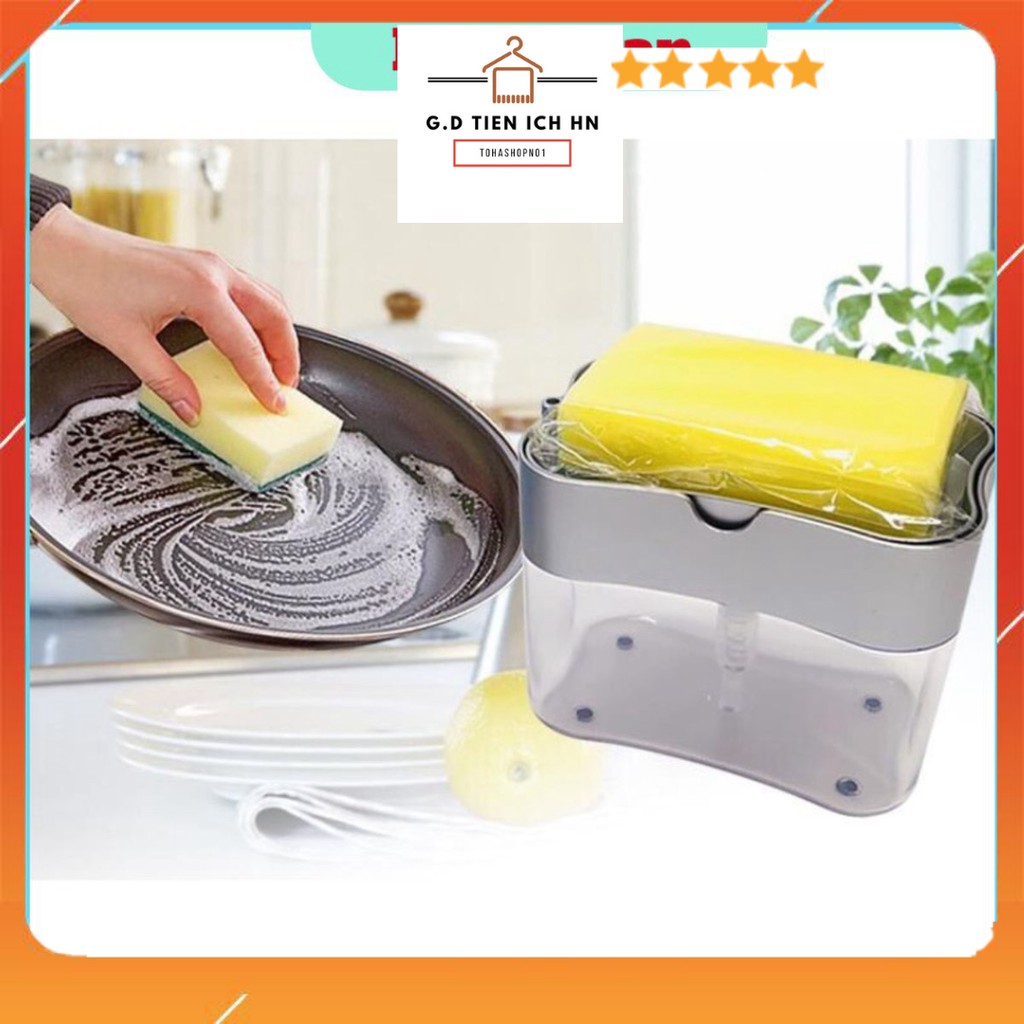 Hộp đựng dầu rửa bát chén - Hộp đựng dầu kèm miếng rửa - Ấn lấy xà phòng thông minh