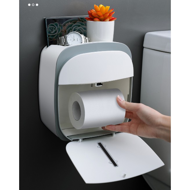 Hộp đựng để giấy vệ sinh dán treo tường để đồ phòng tắm 2 ngăn thông minh