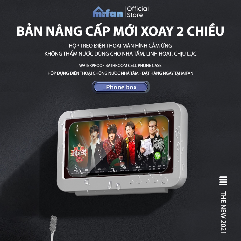 Hộp Đựng Điện Thoại Chống Nước Nhà Tắm MIFAN 2021 - Dán tường siêu chắc, Xoay 2 chiều, Cảm ứng nhạy, Không đọng sương