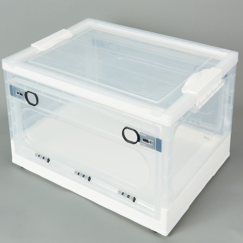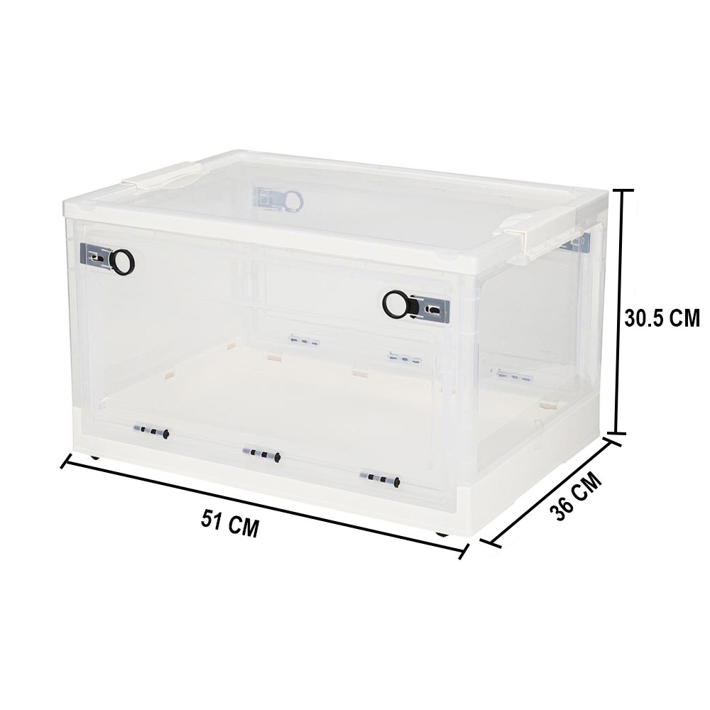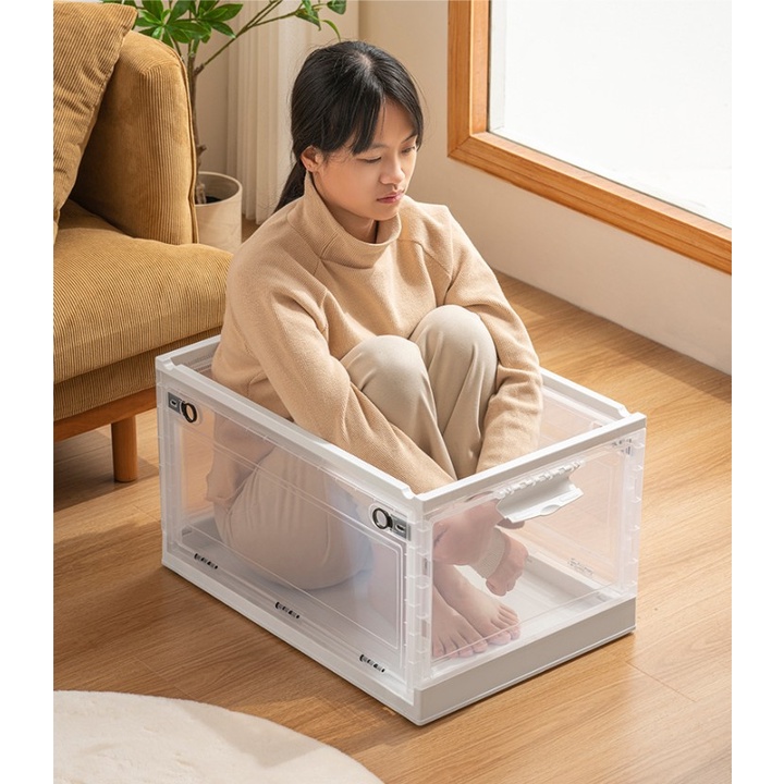 Giữ cho đồ dùng được ngăn nắp với chiếc hộp có thể gấp lại. Chiếc hộp đa năng trong suốt này giúp hiển thị rõ ràng và dễ sử dụng. Phía trước và phía sau có thể gập lại với khóa ở phần trên cho phép bạn cất giữ đồ của mình một cách thuận tiện. Hộp có thể gập lại này lý tưởng để sử dụng trong nhà, văn phòng hoặc xe hơi. "