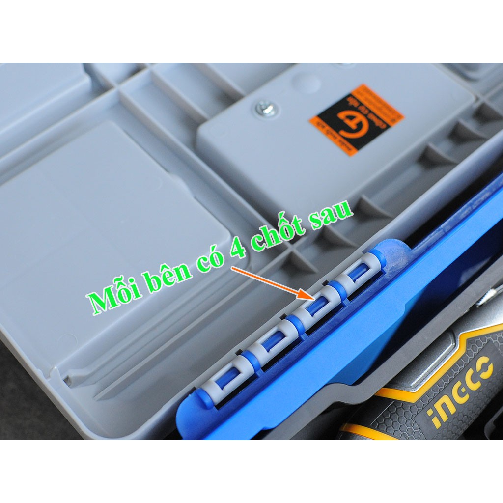 Nắp thùng có 2 khay 2 bên được chia thành 3 ngăn nhỏ để đinh, ốc vít tiện dụng, tránh thất lạc