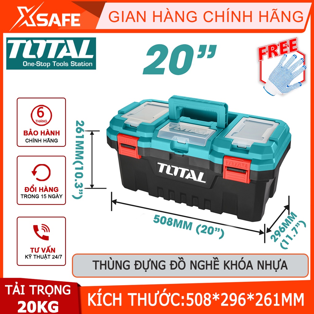 Giới thiệu Hộp đựng đồ nghề TOTAL TPBX0201 Thùng đồ nghề đựng công cụ 20 inch, chất liệu nhựa PP, tải tối đa 20kg, khóa nhựa PP