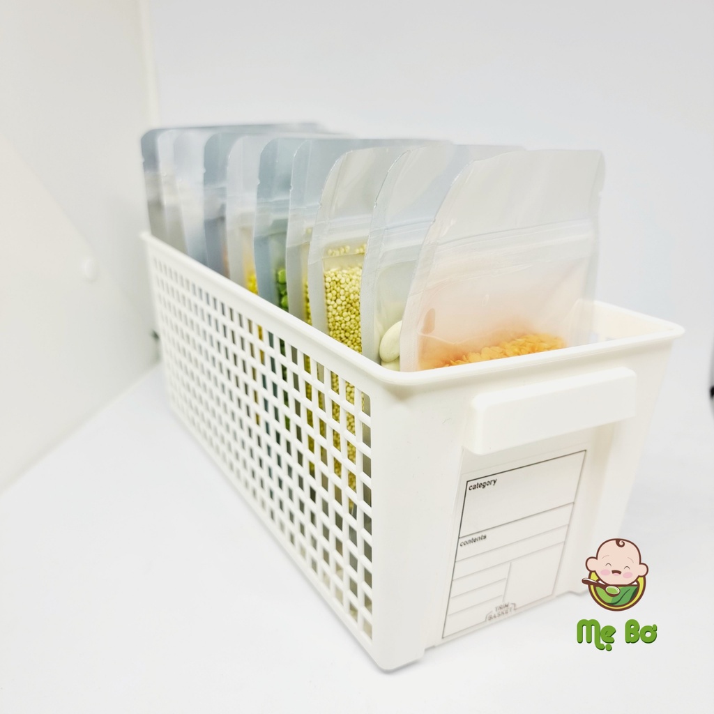 - Công dụng: đựng chai lọ, đồ dùng nhà bếp, đựng đồ tủ lạnh giúp không gian nhà bếp, tủ lạnh thêm gọn gàng. Mẹ Bơ dùng để đựng các túi zip đồ ăn của bé trông rất gọn gàng, không tốn diện tích ạ.
