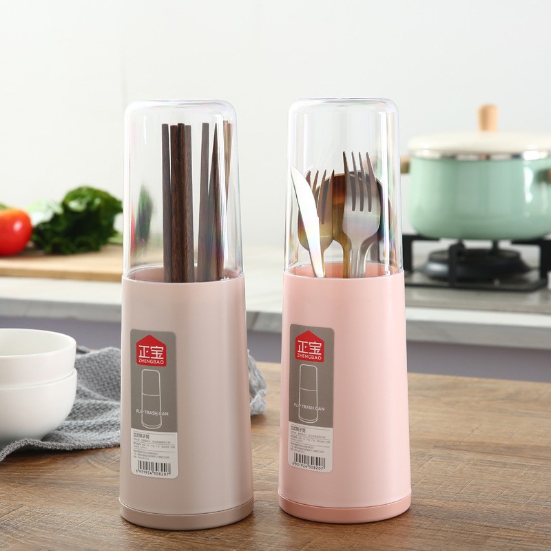Hộp đựng đũa thìa 2 lớp có nắp đậy trống kiến dán ruồi muỗi và bụi bẩn