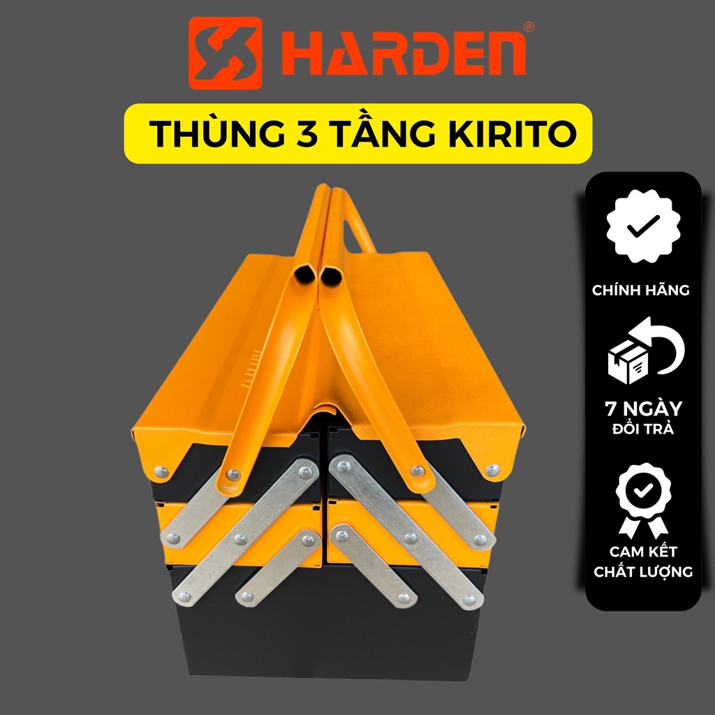 Hộp đựng dụng cụ KIRITO với thiết kế 3 tầng 4 khay tiện dụng, ngăn chứa đa dạng dành riêng cho mỗi loại dụng cụ riêng. Hộp đựng dụng cụ sẽ hỗ trợ đắc lực trong công việc của thợ sửa và các công việc chuyên dụng trong công xưởng, nhà máy,…Hardentools là một thương hiệu nổi tiếng về cung cấp các thiết bị điện và dụng cụ, đồ nghề chuyên nghiệp hàng đầu trên thế giới hiện nay.