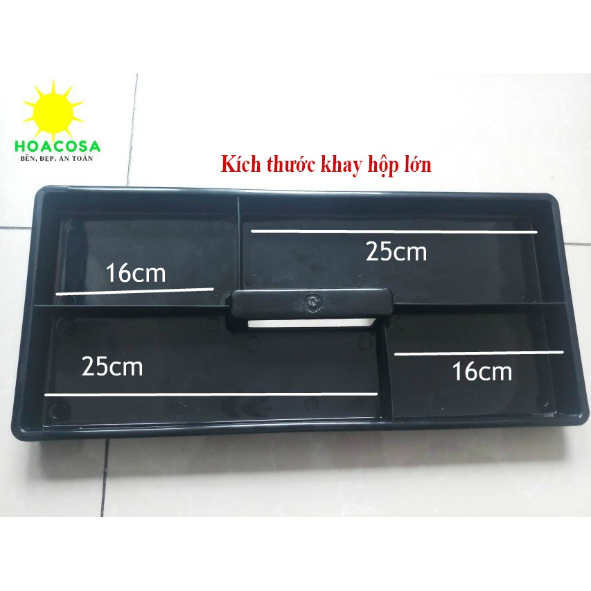 *** Khay nhỏ của hộp được chia làm nhiều ô giúp phân loại đồ dùng dễ dàng và đựng các loại đồ dùng, linh kiện nhỏ ( Có hình minh họa kích thước khay của từng loại hộp).