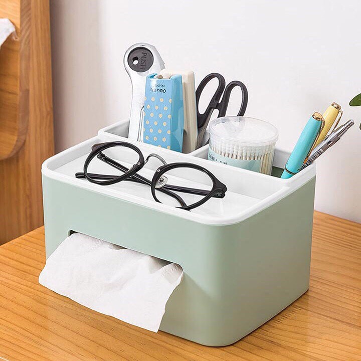 – Ngoài một khe dùng để đựng khăn giấy thì chiếc hộp này còn là đồ dùng phòng tắm, đồ dùng văn phòng hay để trên bàn học cũng rất tiện lợi