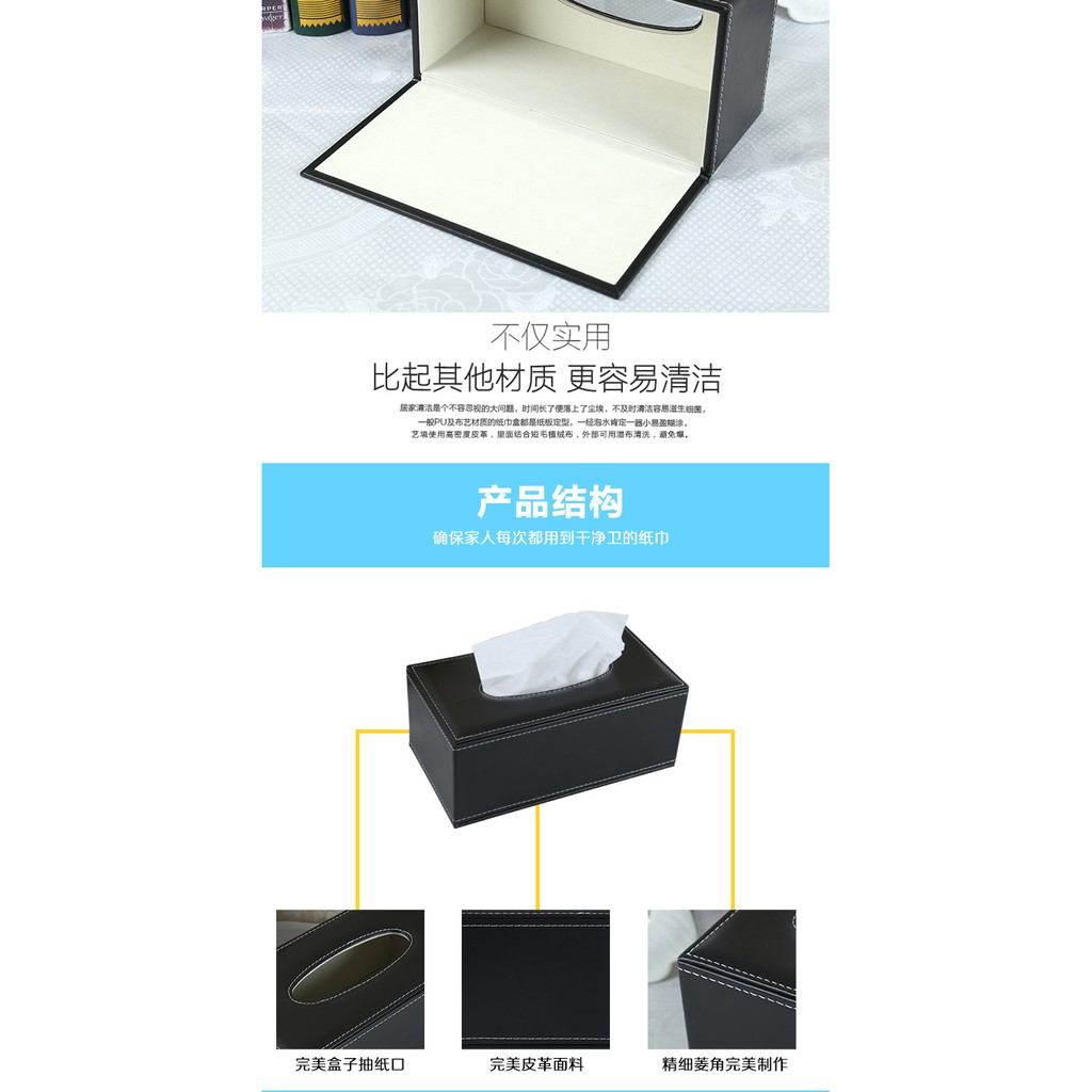Hộp đựng giấy làm bằng chất liệu da nhân tạo cao cấp có bề mặt mềm mại, không bám bụi