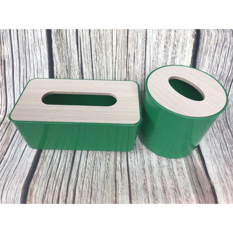 Hộp đựng giấy ănChất liệu: thân bằng nhựa, nắp bằng gỗ.