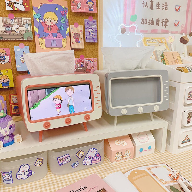 Hộp đựng giấy ăn cao cấp hình ti vi kèm giá đỡ điện thoại 2in1 rất phong cách Vintage