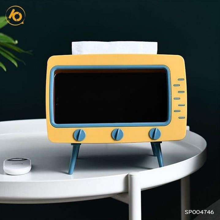 - Khay đựng giấy ăn ti vi để bàn, tích hợp cùng giá đỡ điện thoại giúp bạn thoải mái vừa xem phim vừa rảnh tay làm những công việc mình ưa thích
