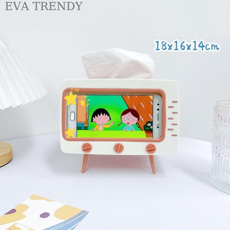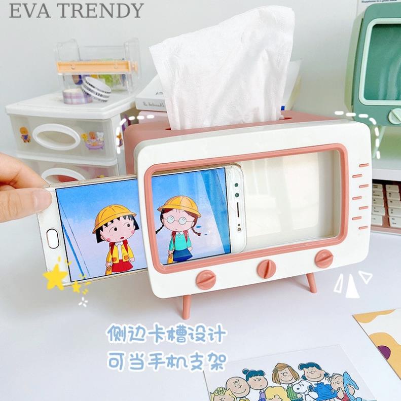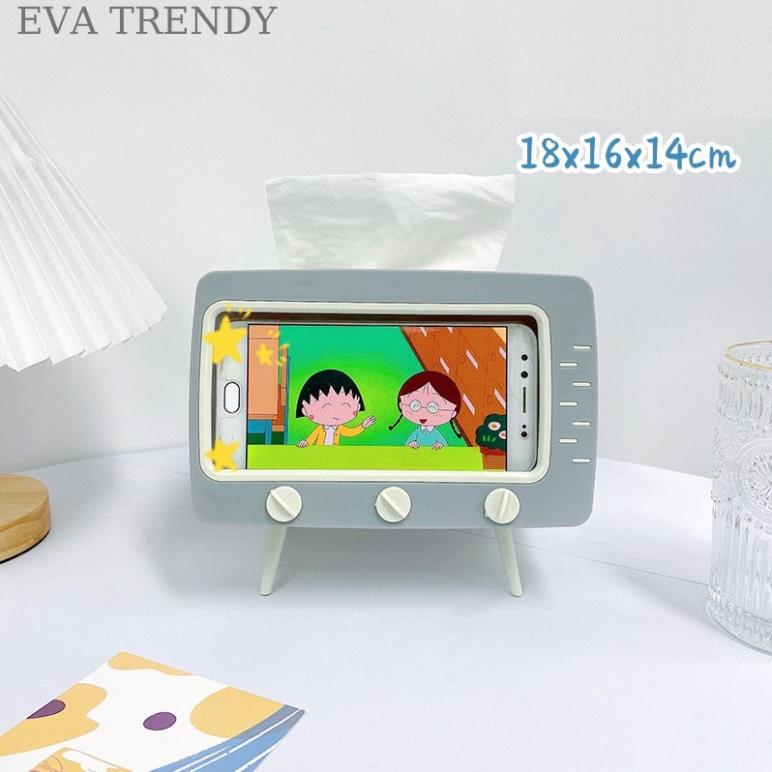 - Khay đựng giấy ăn ti vi để bàn, tích hợp cùng giá đỡ điện thoại giúp bạn thoải mái vừa xem phim vừa rảnh tay làm những công việc mình ưa thích
