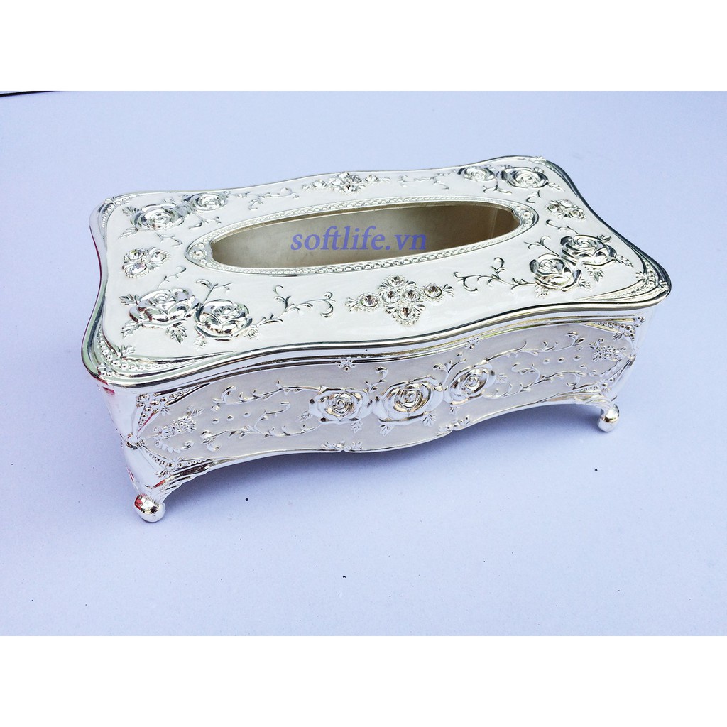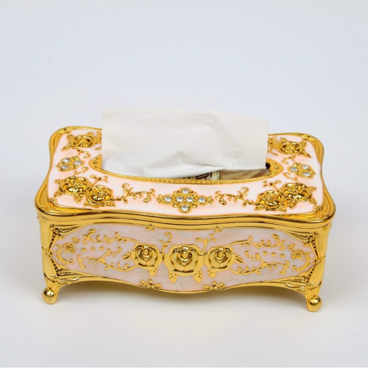 - Hộp đựng giấy ăn được trang trí hoa văn tinh xảo mang tính nghệ thuật cao mang phong cách cổ điển Châu Âu.
