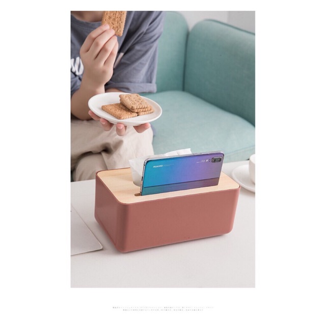 - Hộp đựng khăn giấy bằng nhựa chữ nhật nắp gỗ phù hợp sử dụng trong gia đình, khách sạn ...