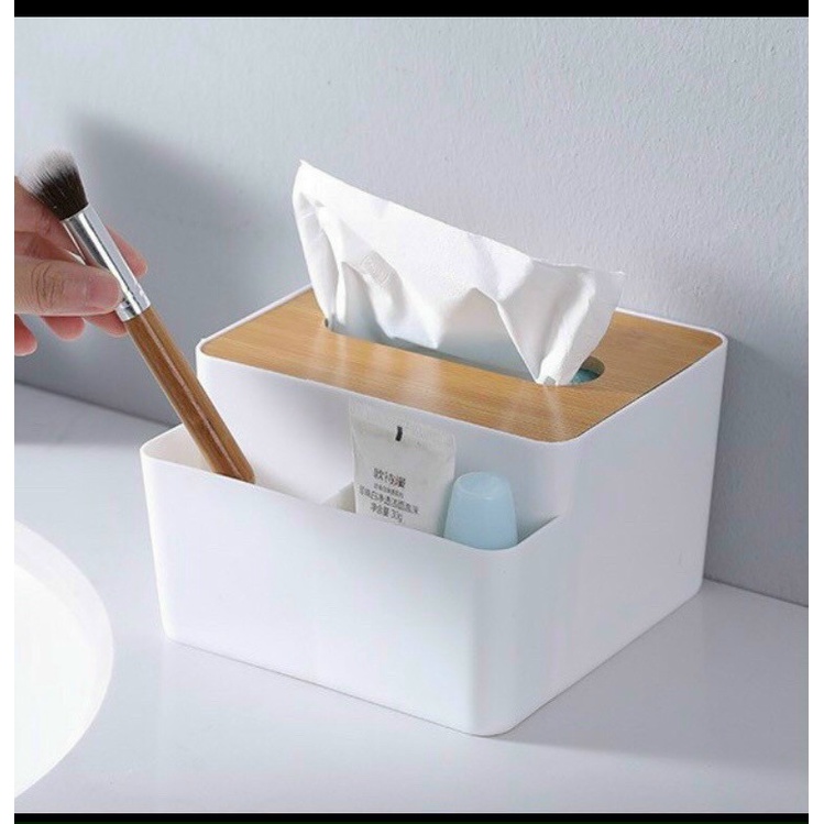 - Kiểu dáng hình vuông với thiết kế 3 ngăn tiện dụng bạn có thể để giấy ăn, đồ dùng ăn hoặc các vật dụng như điều khiển,,,