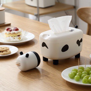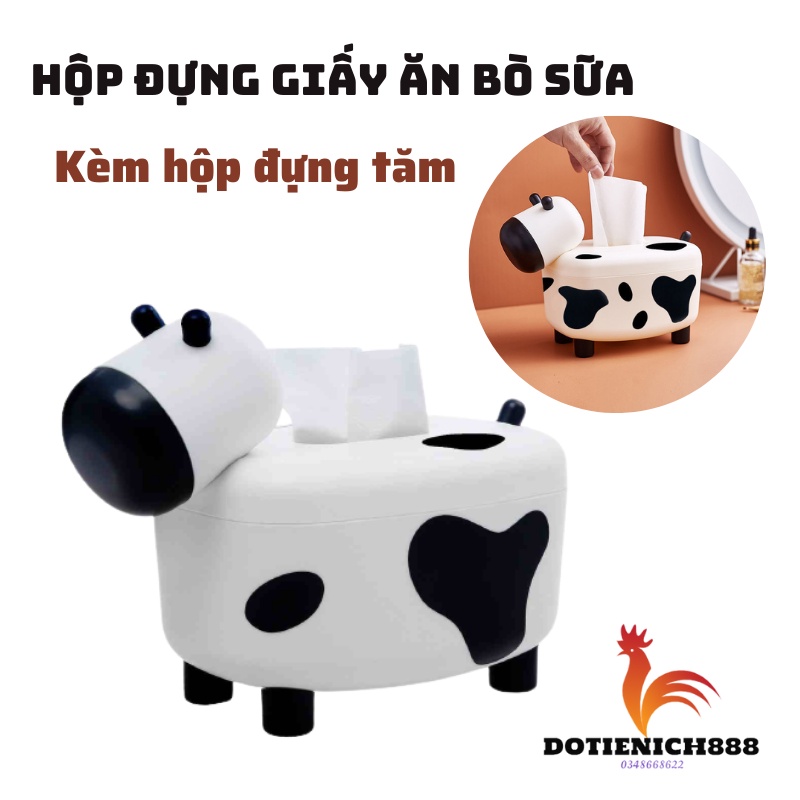 Hộp đựng giấy ăn có hũ lọ đựng tăm để bàn hình bò sữa dễ thương đa năng