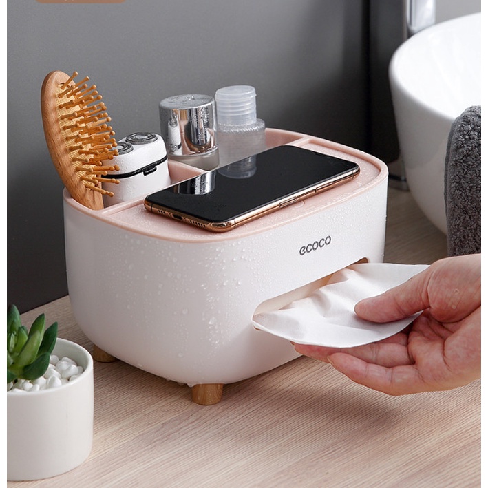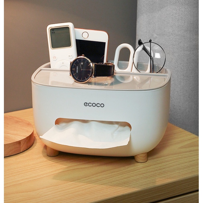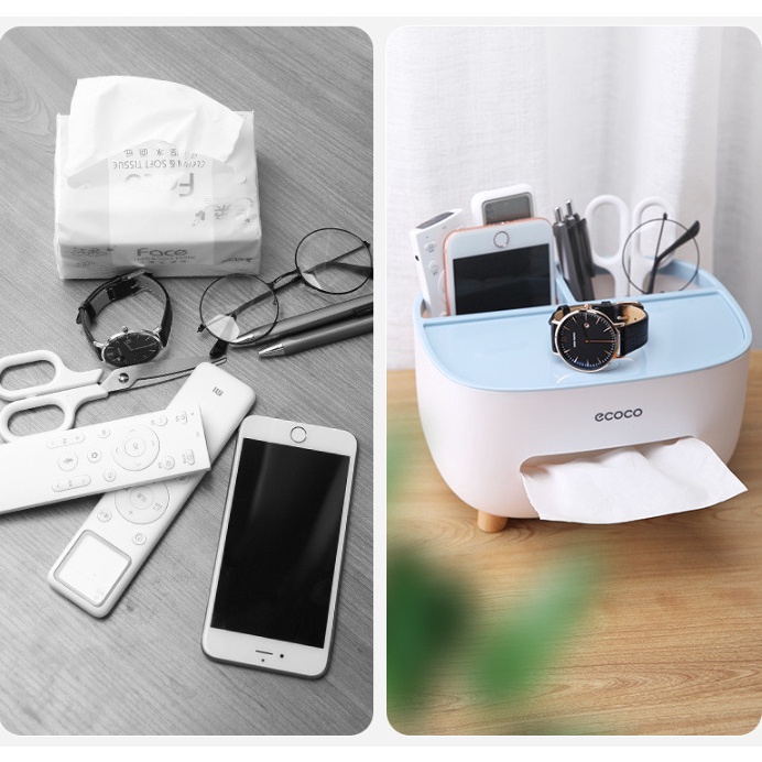 - Hộp nhựa Ecoco mini để bàn, có khay bỏ khăn giấy tiện dụng, có 03 ngăn tách biệt