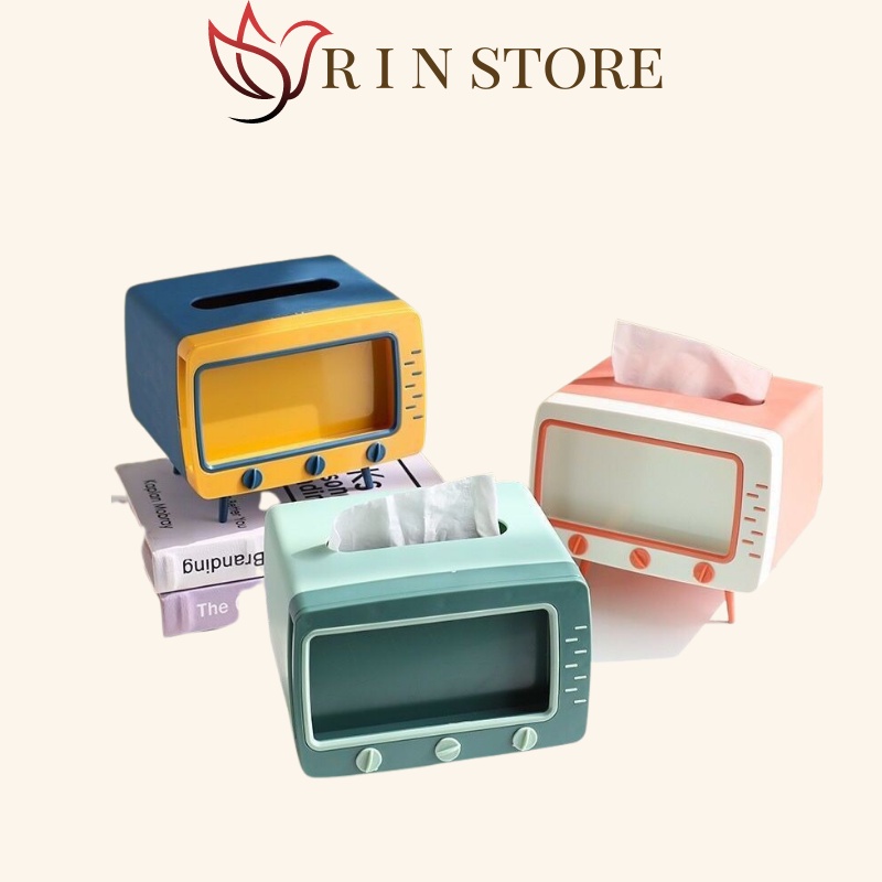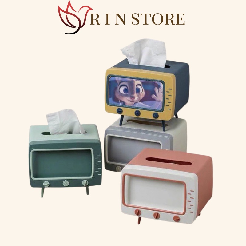 ✅TÊN SẢN PHẨM: Hộp Đựng Giấy Ăn Hình TiVi Giá Để Điện Thoại✅RIN STORE CAM KẾT