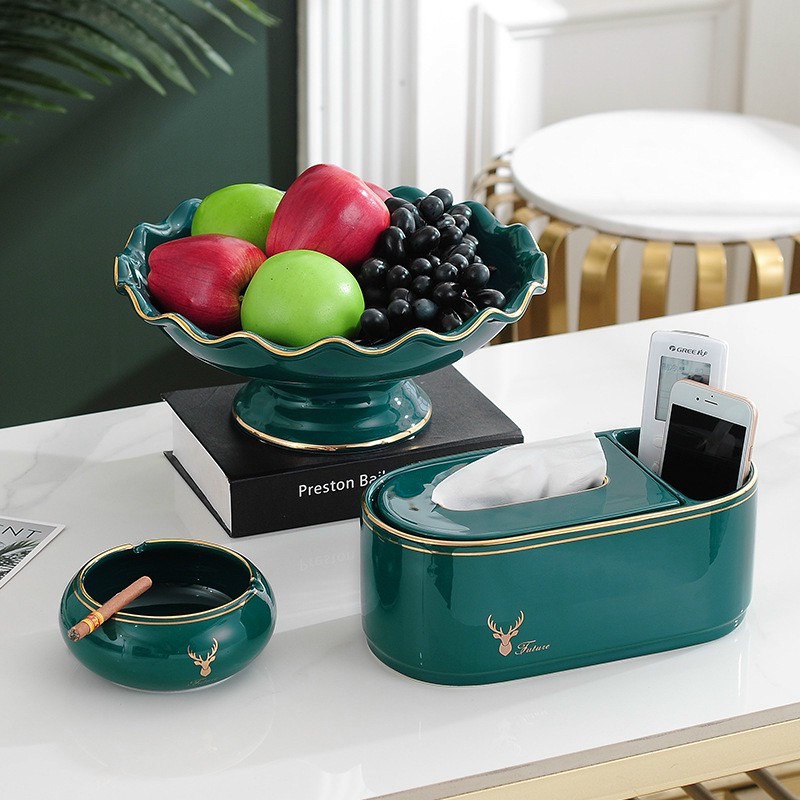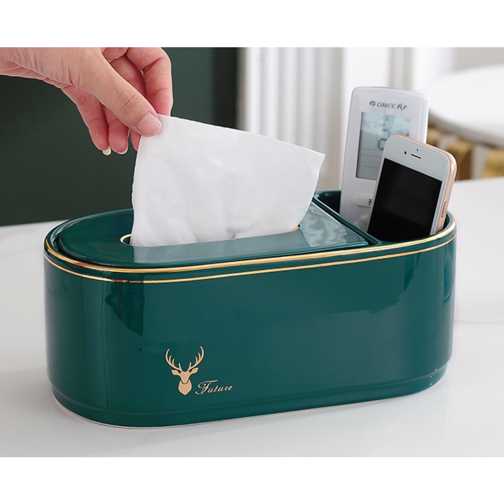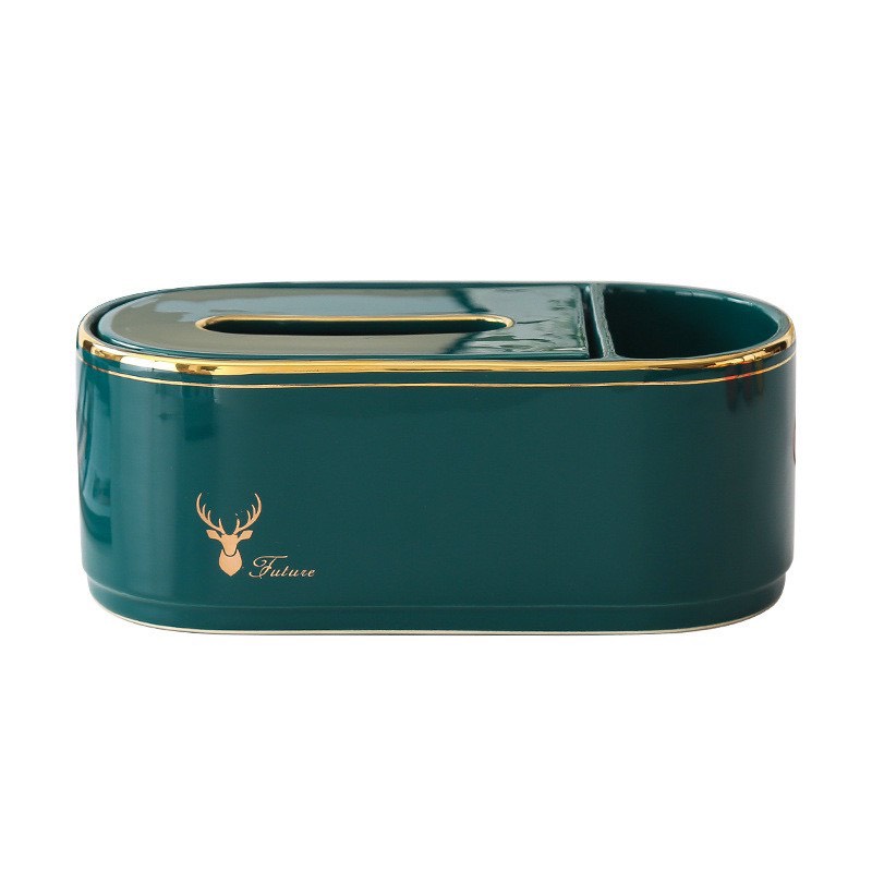 Hộp Đựng Giấy Ăn Đặt Bàn Gốm Sứ Xanh Ngọc Lục Bảo Cao Cấp | Phong Cách Bắc Âu Với Bộ Hươu Quý Tộc. hộp đựng giấy ăn.