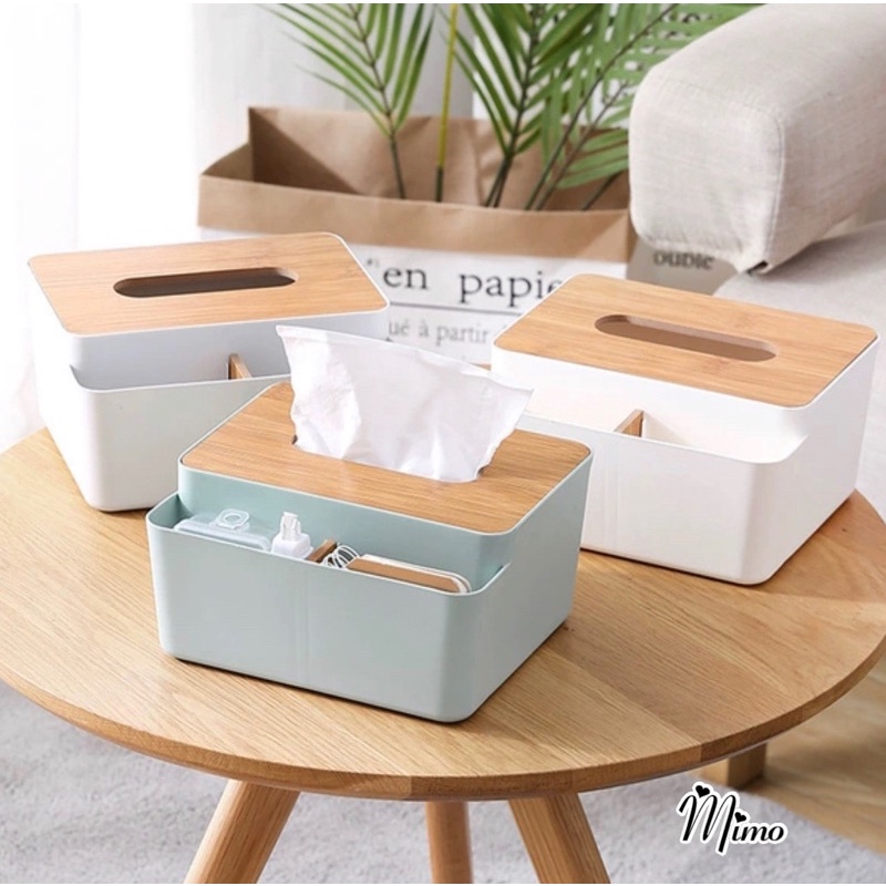 Nhà cửa & Đời sống > Sắp xếp nhà cửa > Hộp khăn giấy || Hộp đựng giấy ăn để bàn có ngăn đựng đồ đa năng, hộp khăn giấy nắp gỗ chất liệu nhựa dàyCòn hàng