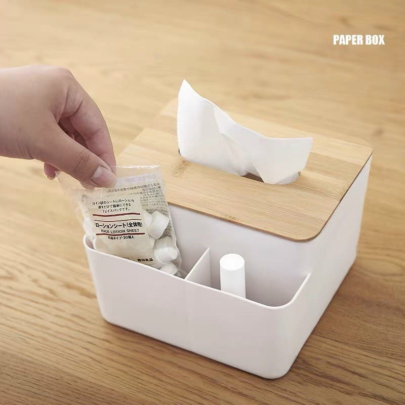 Nhà cửa & Đời sống > Sắp xếp nhà cửa > Hộp khăn giấy || Hộp đựng giấy ăn để bàn có ngăn đựng đồ đa năng, hộp khăn giấy nắp gỗ chất liệu nhựa dày loại 1Còn hàng