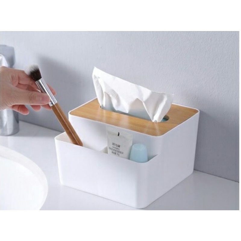Hộp đựng giấy đặt bàn có nhiều ngăn đựng đồ đa năng của có thiết kế đơn giản từ nhựa PS và gỗ thật giúp sản phẩm mang lại sự gọn gàng, tinh tế và sang trọng cho gia đình bạn.Có thể dùng kết hợp đựng khăn giấy và đồ dùng văn phòng, m-ỹ p-hẩm, remote và điều khiển... rất đa năng.