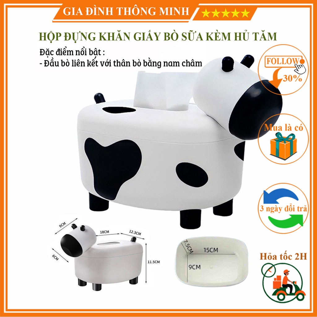 Hộp Đựng Giấy Ăn Để Bàn Hình Bò Sữa Kèm Lọ Tăm Đa Năng Tiên Lợi Siêu Dễ Thương