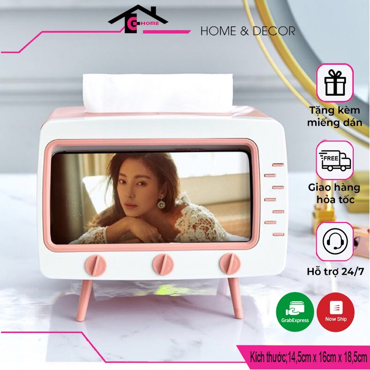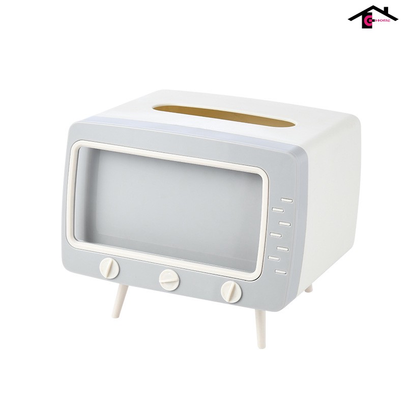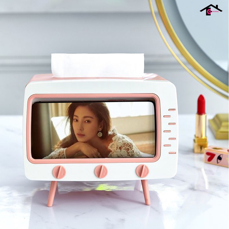 - Khay đựng giấy ăn ti vi để bàn, tích hợp cùng giá đỡ điện thoại giúp bạn thoải mái vừa xem phim vừa rảnh tay làm những công việc mình ưa thích