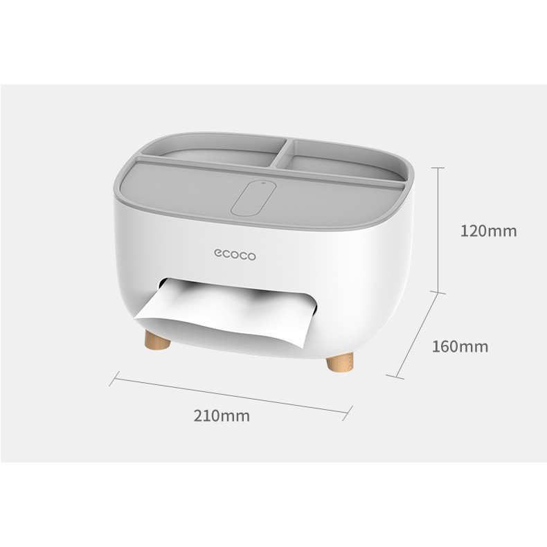 Hộp đựng giấy ăn để bàn kèm khay đựng tiện ích để điện thoại, bút, thước, điều khiển tivi,,, thương hiệu ECOCO
