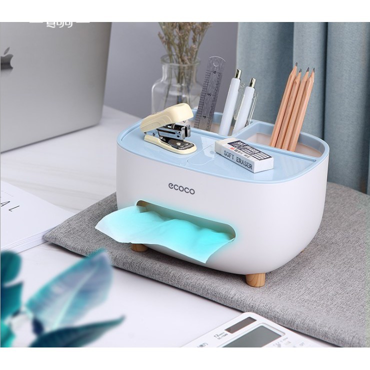 Hộp đựng giấy ăn để bàn kèm khay đựng tiện ích để điện thoại, bút, thước, điều khiển tivi - thương hiệu ECOCO