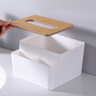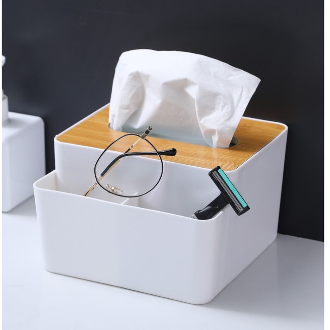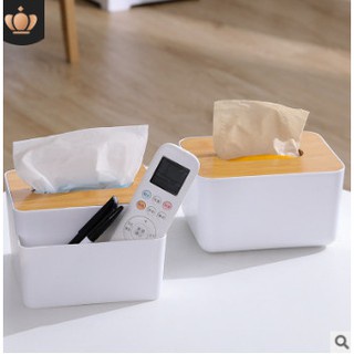 Nhà cửa & Đời sống > Sắp xếp nhà cửa > Hộp khăn giấy || Hộp đựng giấy ăn để bàn nắp gỗ có ngăn để đồ đa năng, decor trang tríCòn hàng