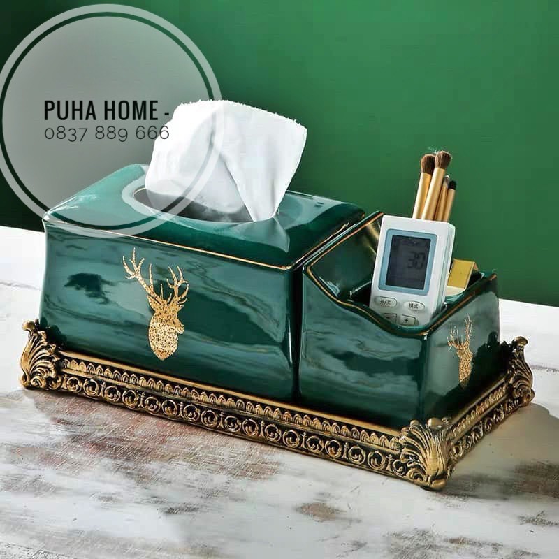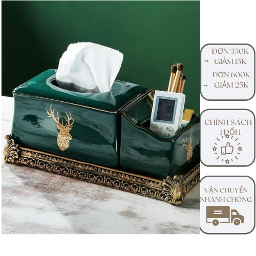 Nhà cửa & Đời sống > Sắp xếp nhà cửa > Hộp khăn giấy || Hộp đựng giấy ăn, điều khiển bằng sứ cao cấp đính kim sa sang trọng - phong cách Bắc ÂuCòn hàng