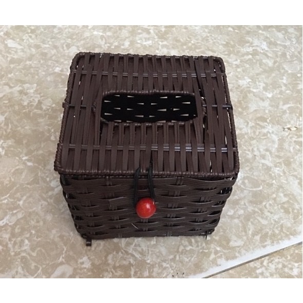 Hộp đựng giấy ăn giả mây hình vuông - màu Nâu