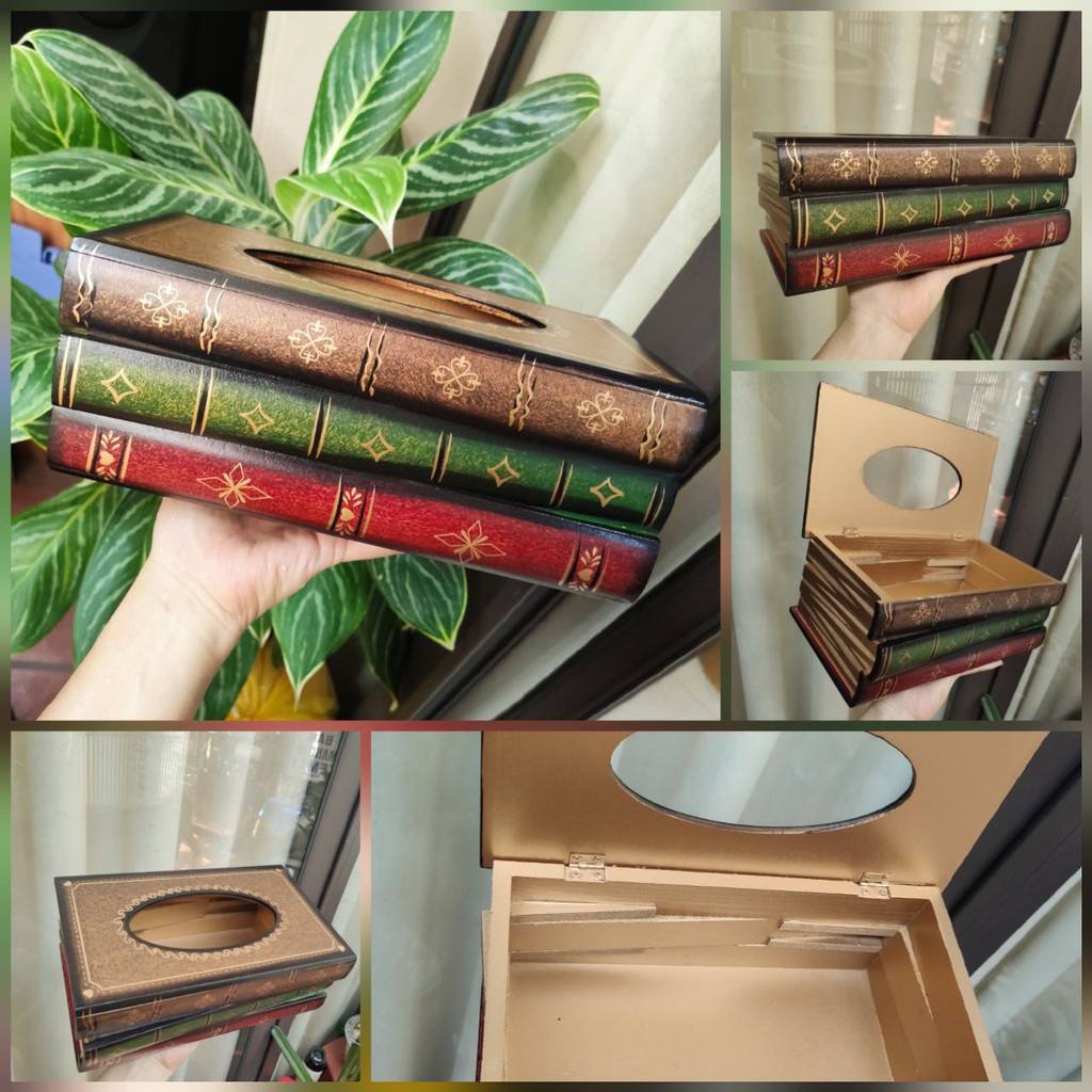 Giới thiệu Hộp đựng giấy ăn gỗ hình sách phong cách cổ điển