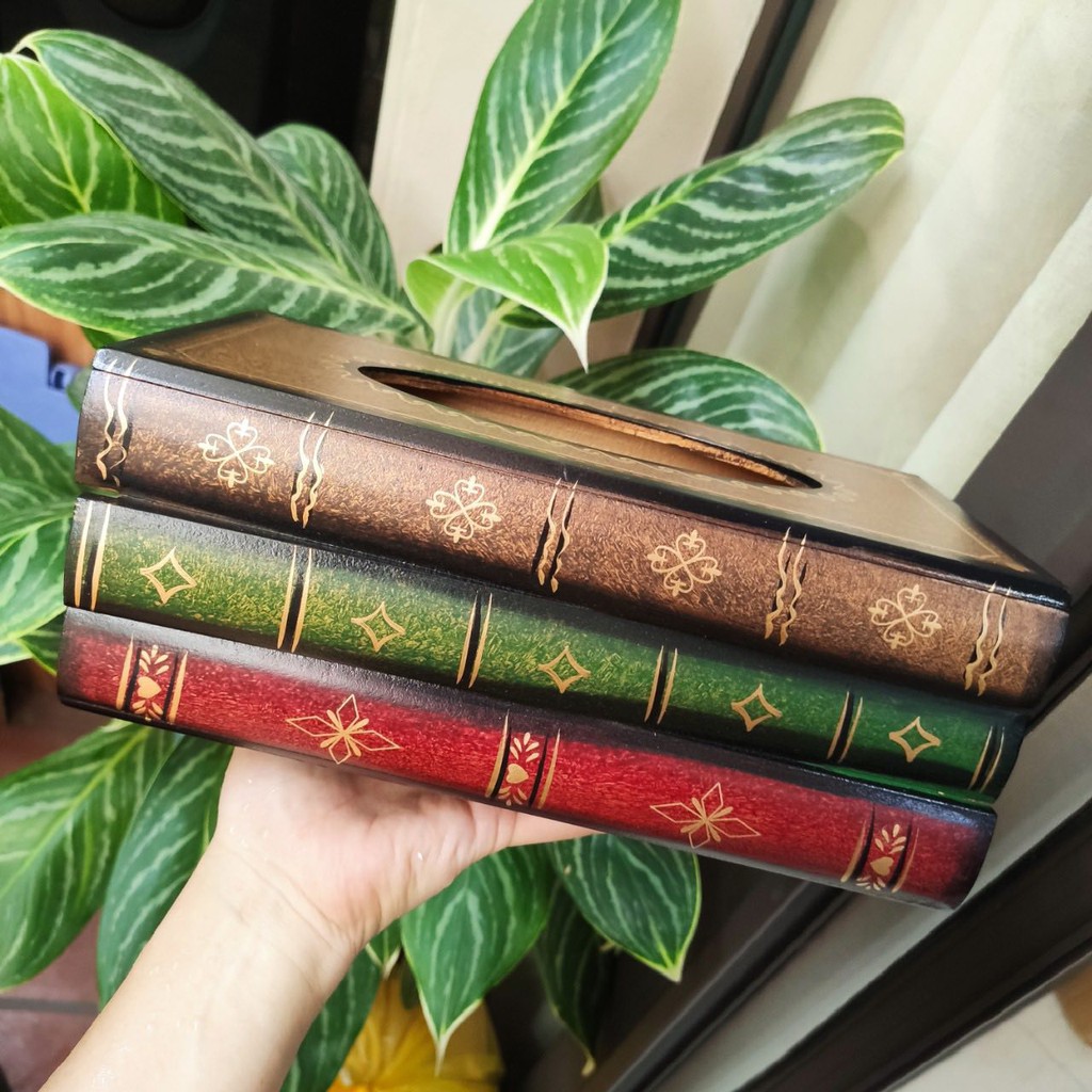 Hộp đựng giấy ăn gỗ hình sách phong cách cổ điển