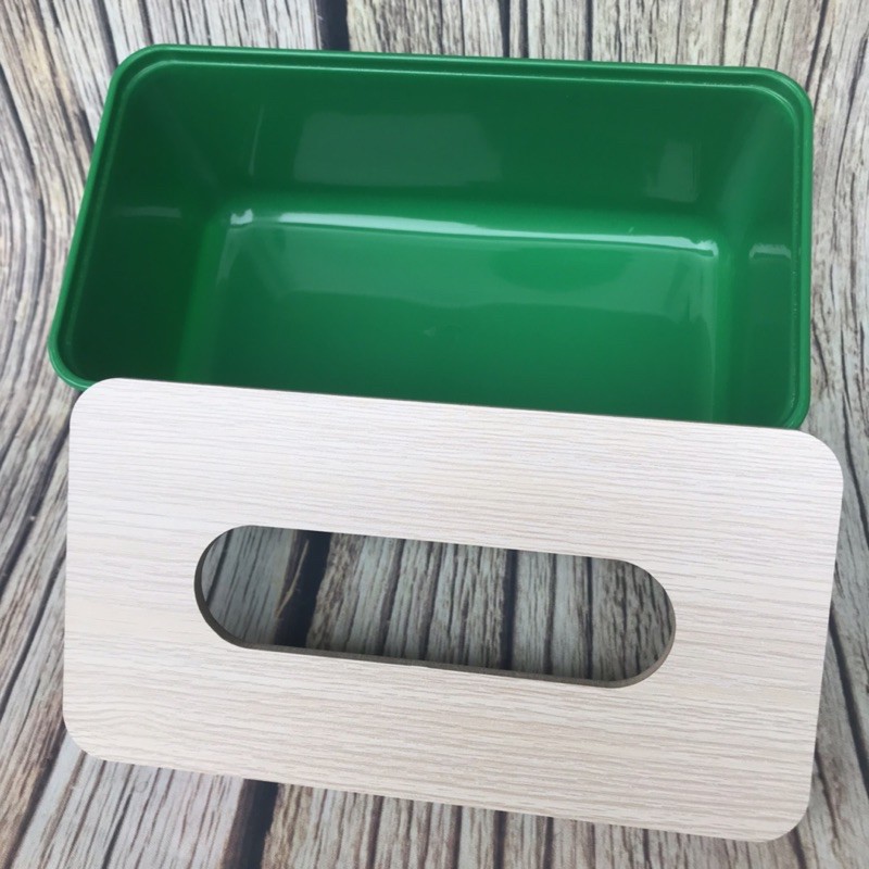 Hộp đựng giấy ănChất liệu: thân bằng nhựa, nắp bằng gỗ.