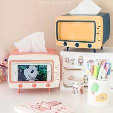 #Sẵn_hộp_đựng_giấy_ăn_vintageHộp Đựng Giấy Ăn Hình Ti Vi Có Giá Để Điện Thoại Siêu Tiện Dụng