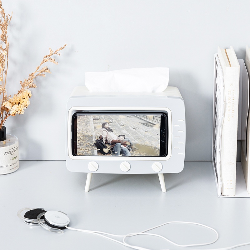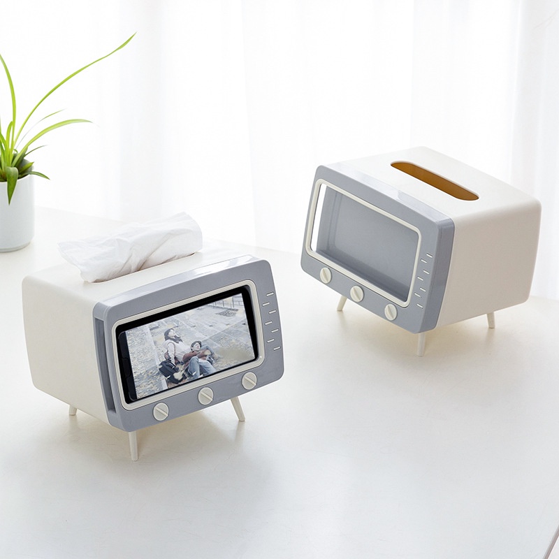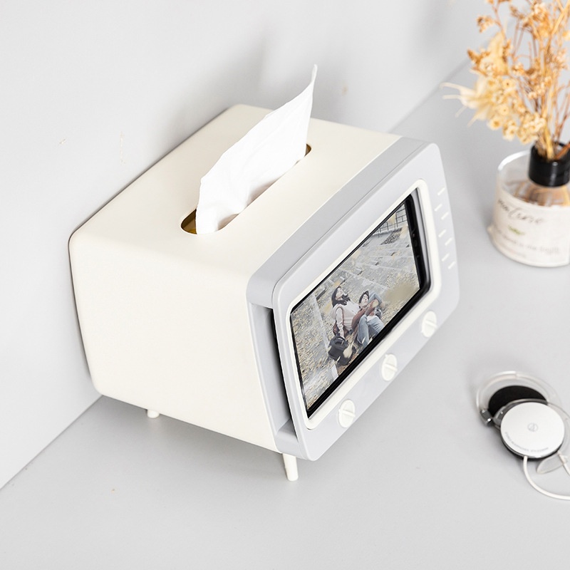Hộp đựng giấy ăn hình ti vi , kèm giá đỡ điện thoại phong cách Hàn Quốc