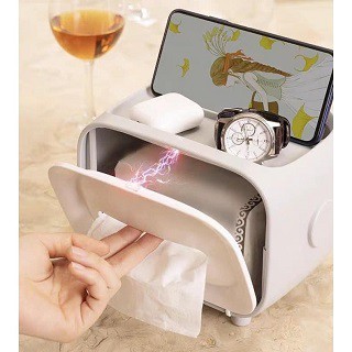 - Khay đựng giấy ăn ti vi để bàn, tích hợp cùng giá đỡ điện thoại giúp bạn thoải mái vừa xem phim vừa rảnh tay làm những công việc mình ưa thích