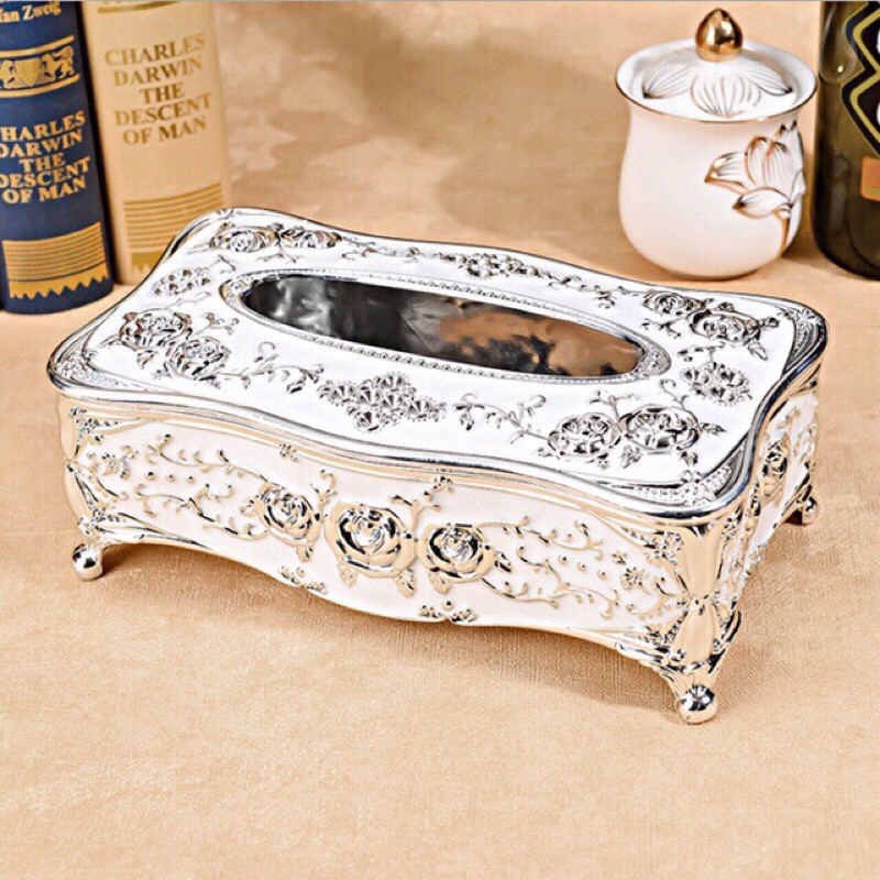 Hộp Đựng Giấy Ăn Hoa Văn Mạ Vàng - Hàng Loại 1
