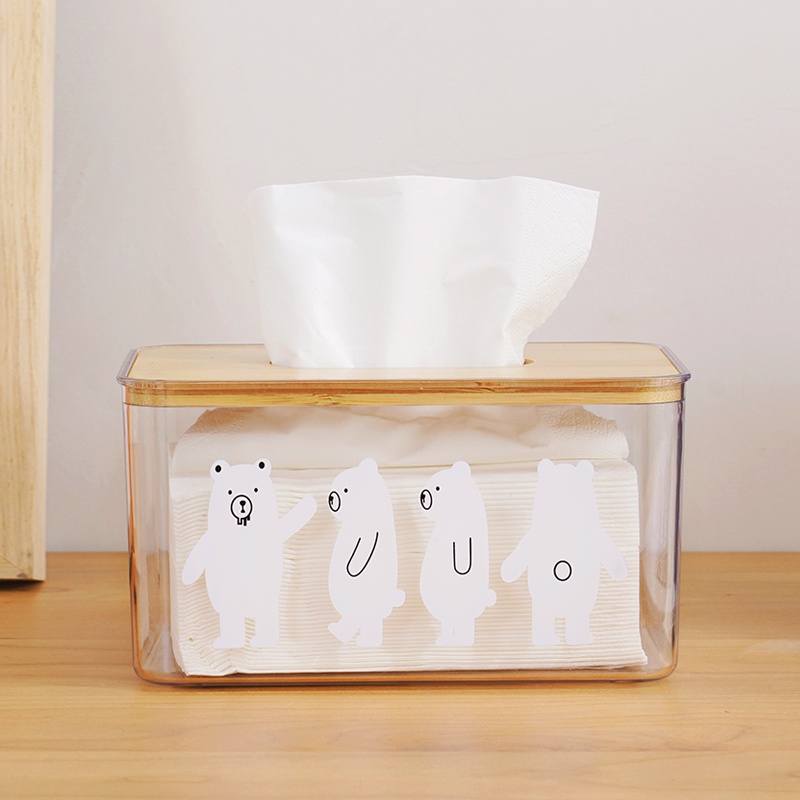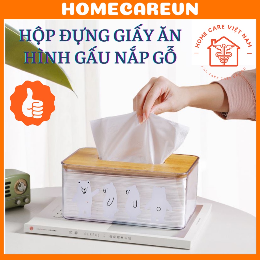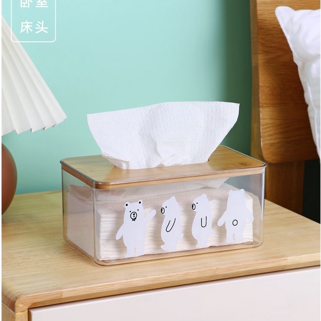 Nhà cửa & Đời sống > Sắp xếp nhà cửa > Hộp khăn giấy || Hộp đựng giấy ăn - hộp giấy ăn hình 4 chú gấu trong suốt nắp gỗCòn hàng