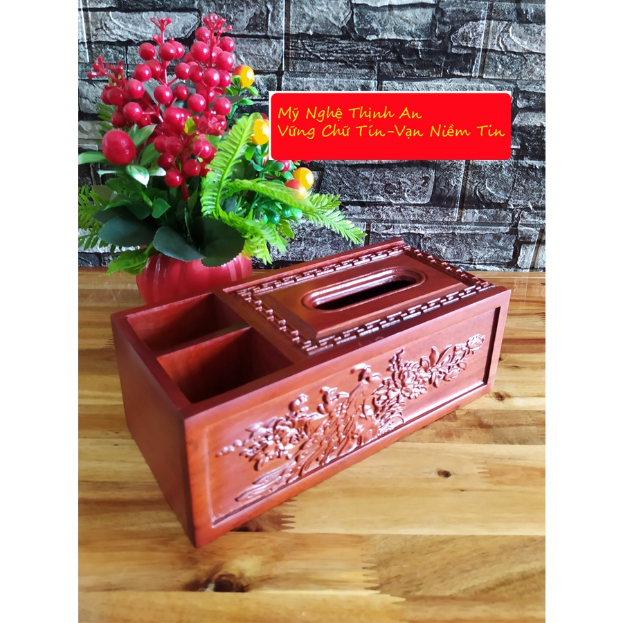 Hầu hết tất cả các gia đình đều sở hữu ít nhất một hộp đựng giấy ăn trong nhà. Nhưng gia chủ còn muốn đồ vật của mình sử dụng luôn phải thể hiện được nét cá tính, sự sang trong và gu thẩm mỹ của chính gia đình mình. Nếu bạn muốn tôn lên nét sang trọng, khả năng lựa chọn đồ dùng tinh tế, gu thẩm mỹ đặc biệt, lại đảm bảo an toàn cho sức khỏe thì chỉ một hộp đựng giấy ăn 3 ngăn bằng gỗ hương cao cấp loại a của chúng tôi là sự lựa chọn hoàn hảo.