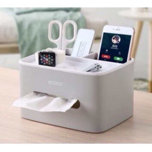 Nhà cửa & Đời sống > Sắp xếp nhà cửa > Hộp khăn giấy || Hộp đựng giấy ăn kèm khay để điều khiển, điện thoại Ecoco 1602Còn hàng