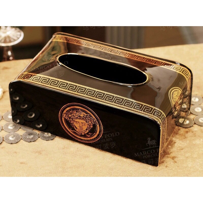 HỘP GIẤY ĂN CAO CẤP được làm thủ công bằng gốm sứ, dòng hộp đựng khăn giấy câu lạc bộ khách sạn trang trí nội thất gia đình cổ điển dòng Medusa, đồ gia dụng của hoàng gia Châu Âu, đồ gốm sứ chịu nhiệt cao cấp, được trang trí bằng hoa văn sơn mài vàng trang nhã, tinh tế và phi thường. Khí thế, cao quý và tràn đầy hương vị tao nhã của chủ nhân, nó có thể được gọi là một tác phẩm nghệ thuật!Chất liệu dành cho hộp: Gốm nhiệt độ cao