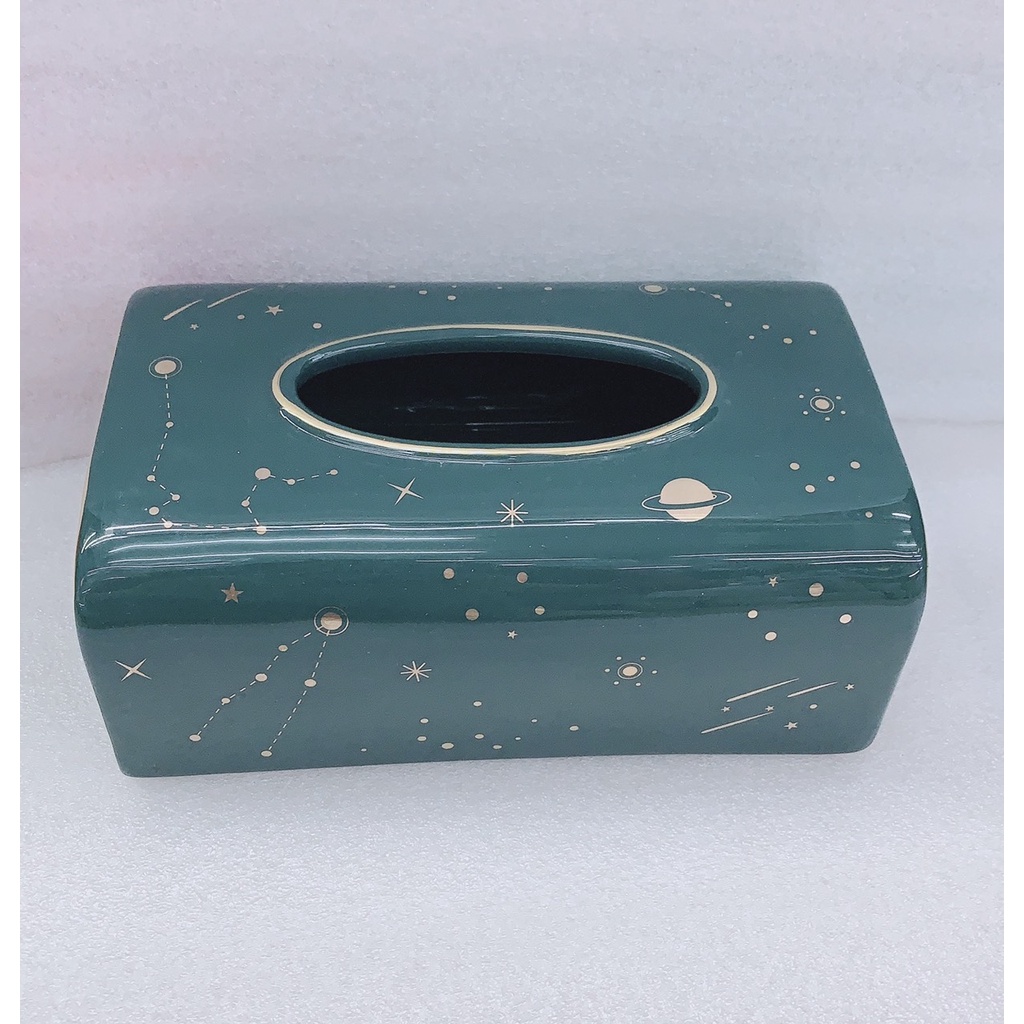 Hộp đựng giấy ăn khăn ăn bằng sứ màu xanh cổ vịt hoạ tiết trăng sao, sang trọng, lịch sự