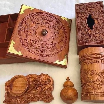 Giới thiệu Hộp đựng giấy ăn ( khăn giấy) khắc triện gỗ Hương Đình siêu sang cao cấp - Hàng xuất khẩu loai I