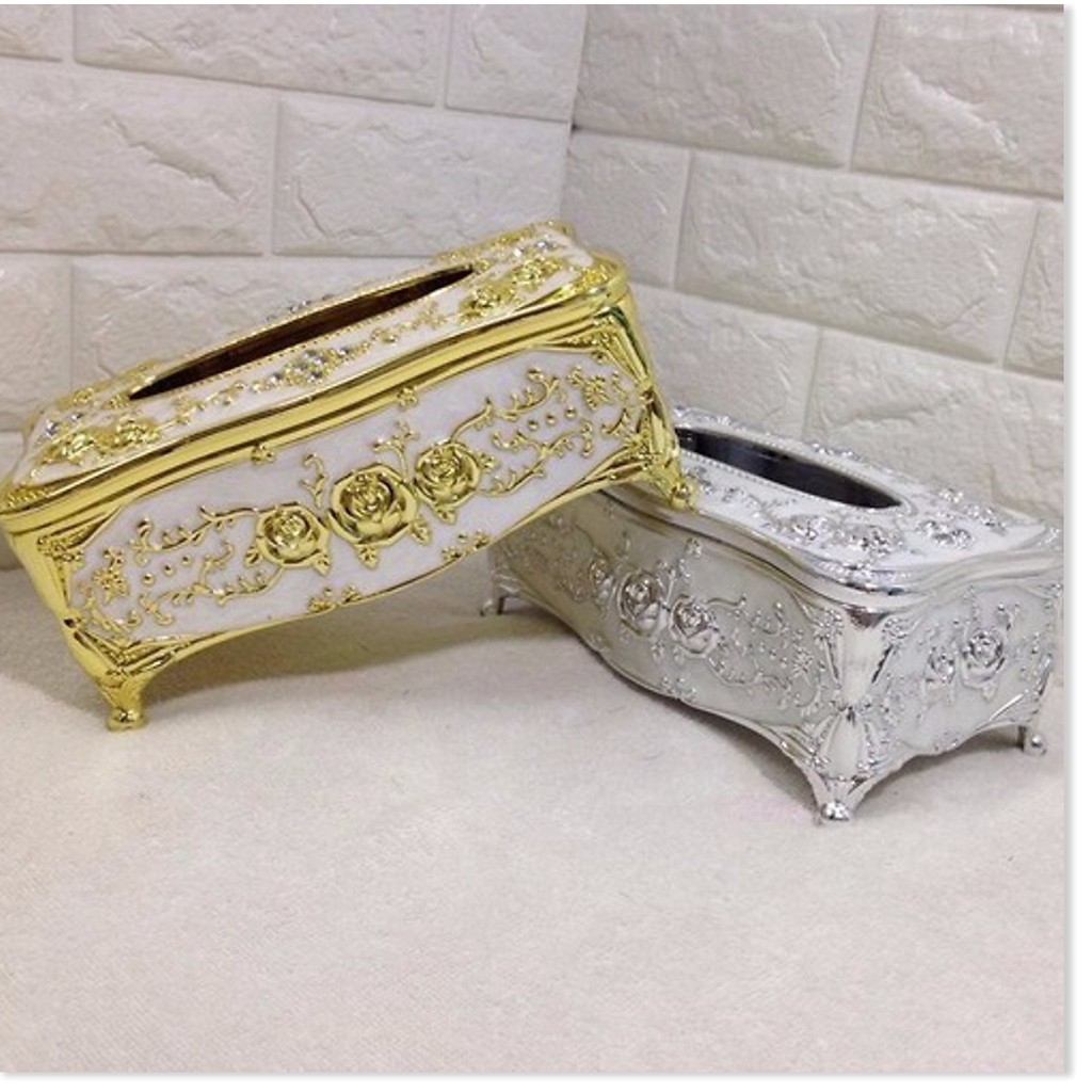 Hộp đựng giấy ăn mạ vàng, mạ bạc phong cách hoàng gia - giao màu ngẫu nhiên, xịn sò vô cùng
